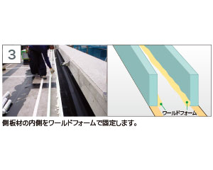 組立てるだけの充実したセット内容なので、工期を短縮できます。また、スキン仕上げのため、側面のコテ塗りも不要です。現場打ちコンクリートの側圧も問題ありません。