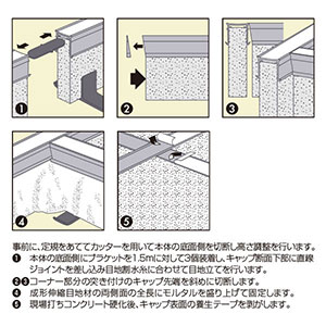 キャップ側面の曲線部分の働きで、土間コンクリートの破損を防止し、施工完了時の仕上りを維持します。また、ガラス繊維を配合することにより、縮み・反りを軽減、耐衝撃性もアップしました。キャップは、カッターで切断可能なので施工性もアップ。施工性重視、経済性、コンクリートのことを考えた成形伸縮目地材です。